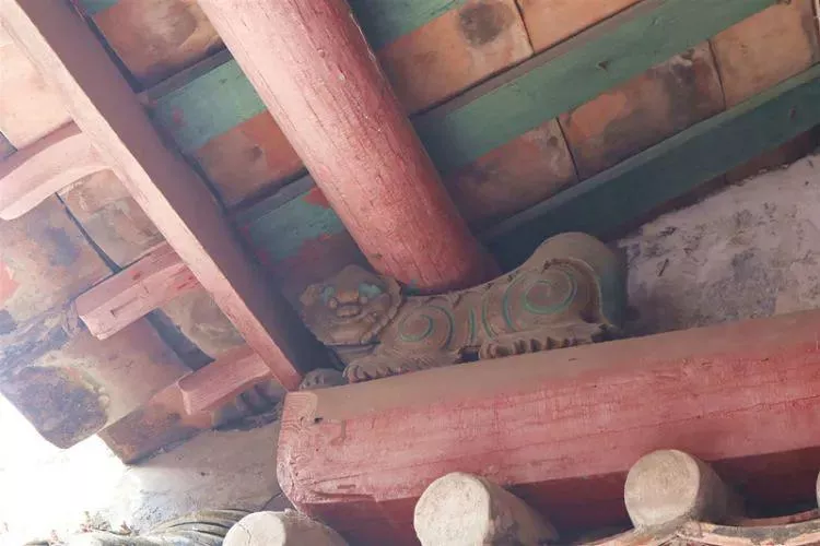 正門上有一方石額,刻著“福田世居”4個楷書大字。潘偉兵引記者入內(nèi),“這里主廳分為下、中、上三進(jìn)?!表敻咄ㄍ?,門上花卉浮雕,紅漆有些斑駁,但輪廓清晰,立體感十足;屋檐下畫著精美壁畫,繪有牡丹、松樹、白鷺、燕子寓意吉祥的動植物,色彩至今仍保存完好;中間兩條主梁雕滿了花草圖案,紅藍(lán)各一。