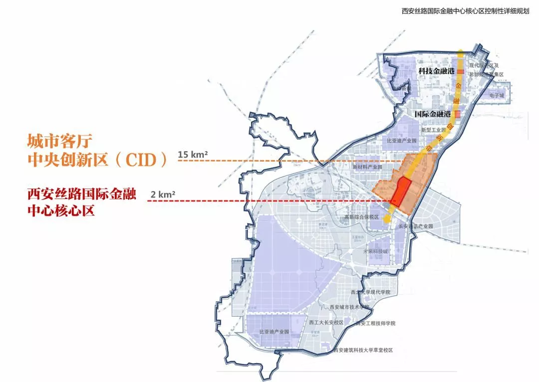 根據(jù)公開資料,西安蘭桂坊所在的西安絲路國(guó)際金融中心,規(guī)劃面積為兩平方公里(相當(dāng)于3000畝,見下圖)。這意味著,西安蘭桂坊占據(jù)了西安絲路國(guó)際金融中心30%的土地。如果按照“容積率=4”計(jì)算,估算建筑面積200萬平米左右。