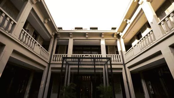 時空錯落之感從看到大廳那刻便起了。若不是那棵盤桓在門前的古樹,我可能無法確認這外表充滿現(xiàn)代主義極簡風(fēng)格的建筑和“民國”能扯上關(guān)系。