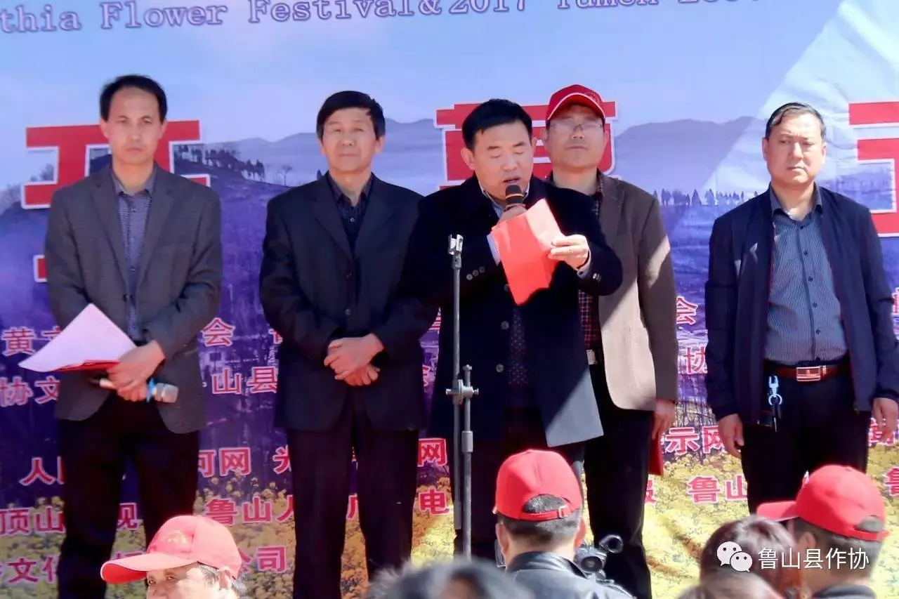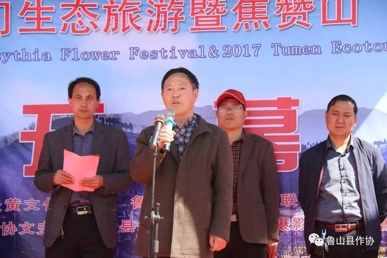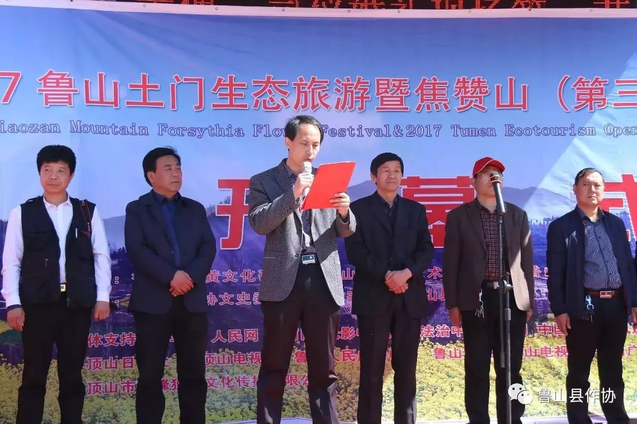 千里連翹花盛開,深山美景入眼來!4月6日上午,2018魯山土門生態(tài)旅游暨焦贊山(第四屆)連翹花節(jié)開幕式在魯山縣土門辦事處焦山村文化廣場隆重舉辦??h委常委、縣武裝部政委張旭,縣政協(xié)副主席、縣炎黃文化研究會執(zhí)行會長邢春瑜,縣文聯(lián)主席、縣民協(xié)主席郭偉寧,土門辦事處黨工委書記吳廣志,土門辦事處黨工委副書記、辦事處主任王柯夫,縣作家協(xié)會主席葉劍秀,縣詩詞楹聯(lián)協(xié)會主席李保國和縣攝影家協(xié)會、縣書法家協(xié)會