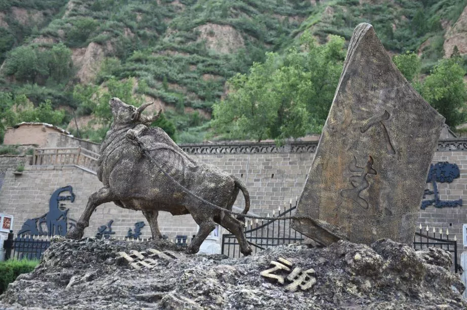 #直播中國(guó)榆林行#【走進(jìn)平凡的世界路遙紀(jì)念館】位于清澗縣石咀驛鎮(zhèn)王家堡村的210國(guó)道東側(cè),與路遙故居毗鄰相望。門前是一座雕塑,一頭奮蹄昂首的耕牛,拖曳著路遙的兩部代表作——《人生》和《平凡的世界》,默默耕耘在蒼茫的黃土地上,呼應(yīng)著路遙的那句名言——“像牛一樣勞動(dòng),像黃土一樣奉獻(xiàn)”。