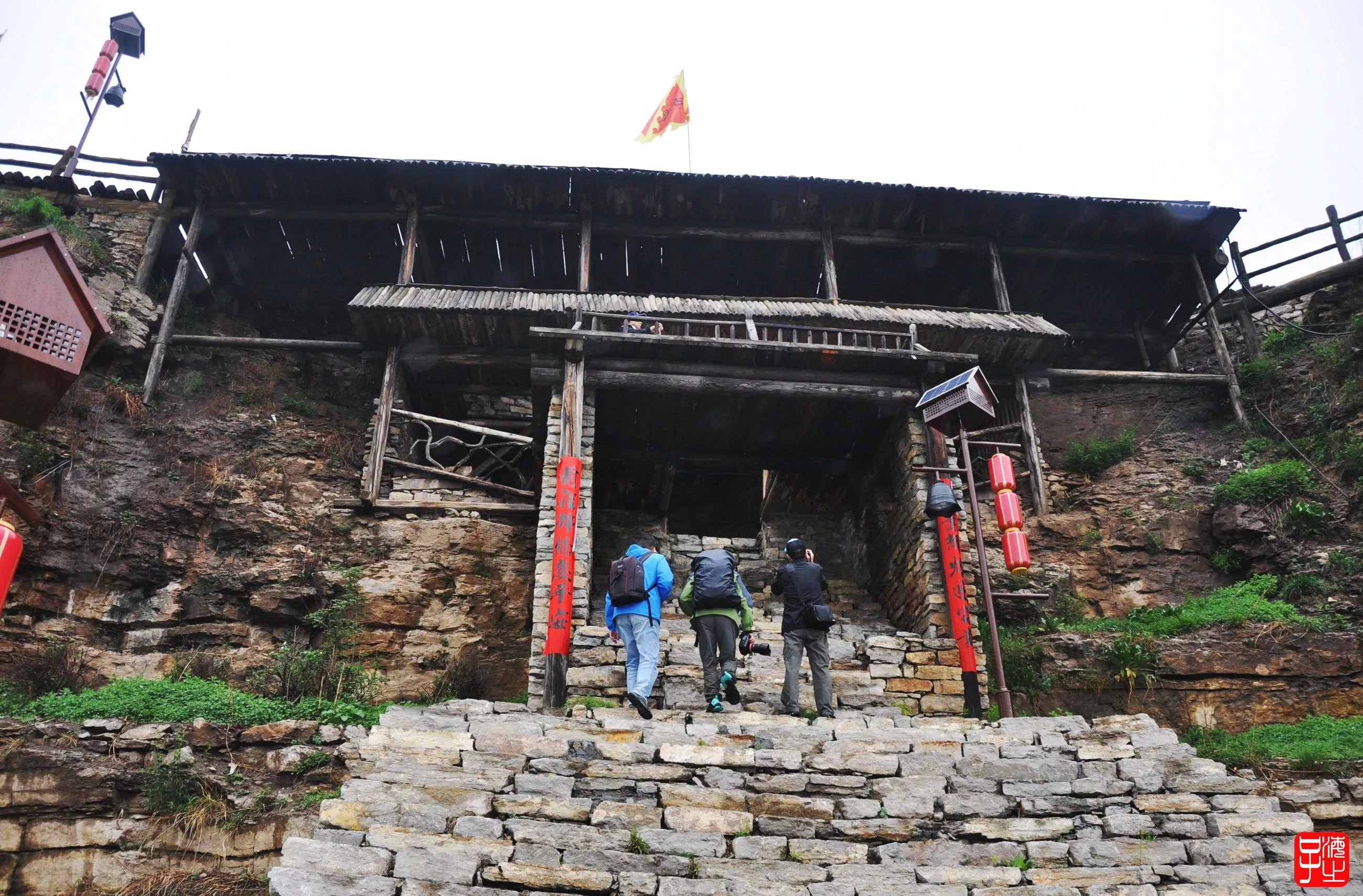我們沿著景區(qū)的指示牌一路前行,很快來(lái)到了進(jìn)村寨的山門,那個(gè)山門也不大。進(jìn)門之后就是就是一條幾乎是接近80度的樓梯直上直下,讓人非所思議。假如背負(fù)著重物怎么上去呢?讓人費(fèi)解。
