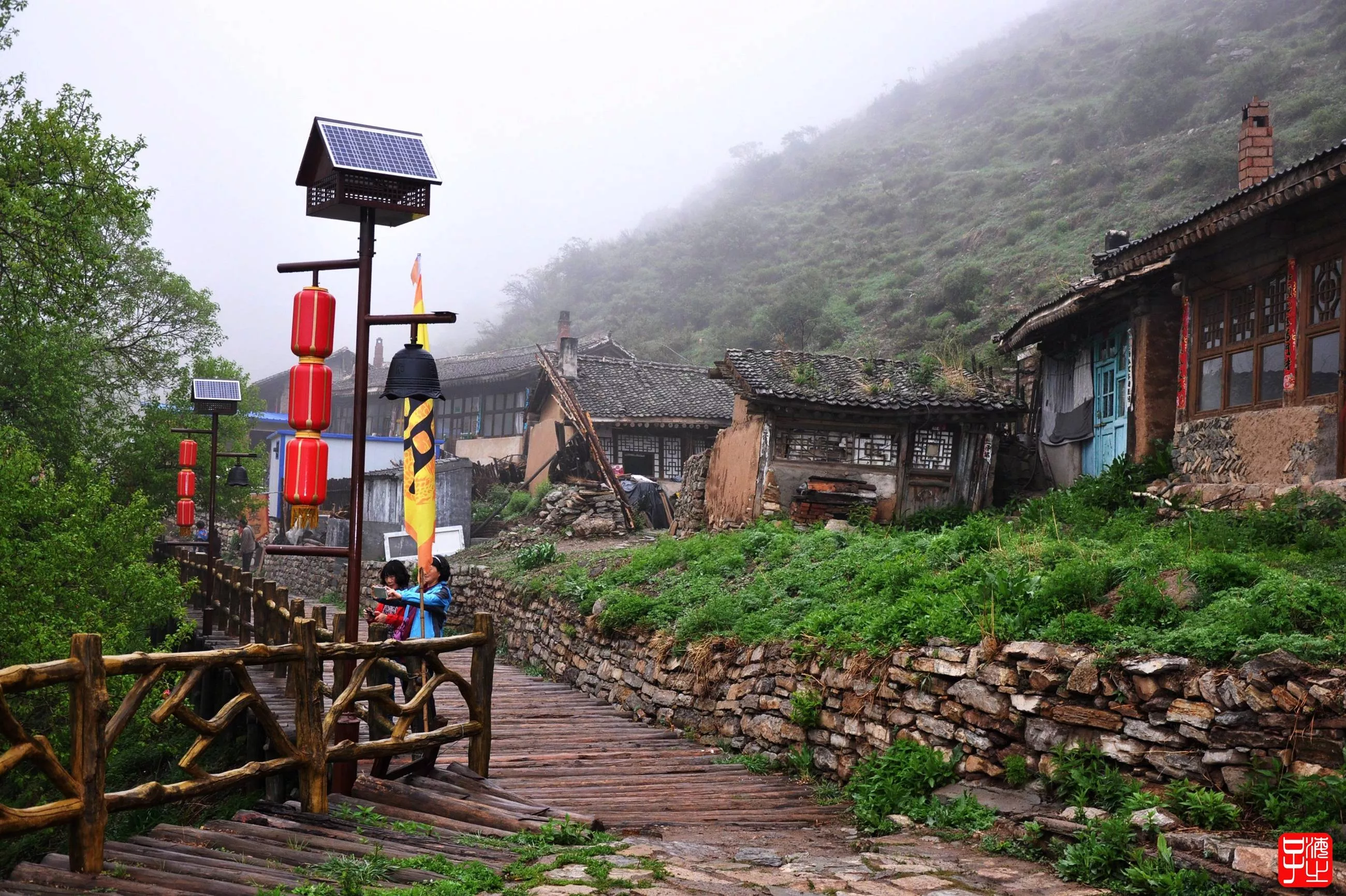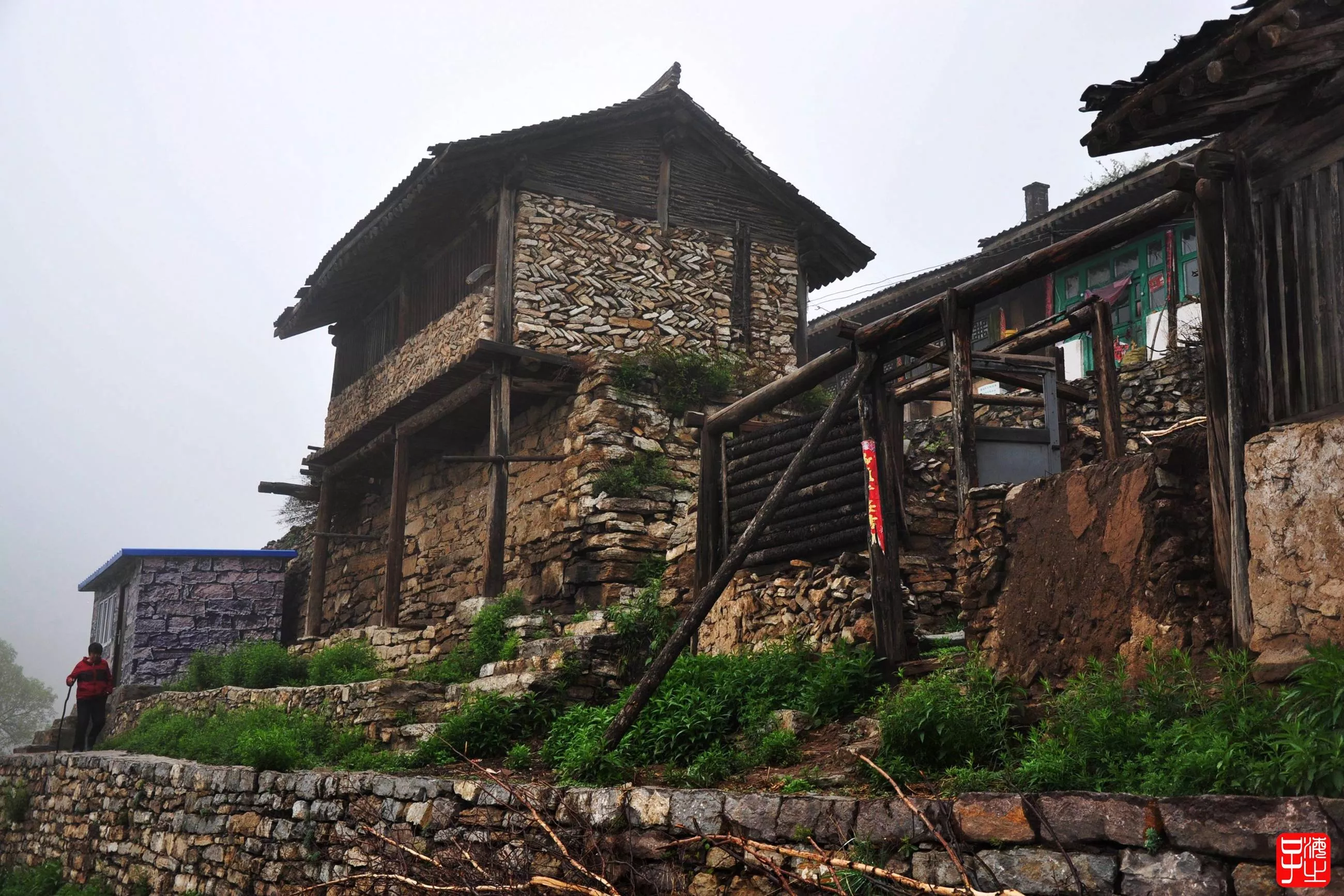 “村里房屋都建在百米高的懸崖絕壁上(村落海拔2300米),街道是立木支撐、圓木鋪架的“棧道”。在這個(gè)古老的村子里,處處可見石砌的小徑、古樸的民居,村民們悠然地過(guò)著日出而作、日落而息的農(nóng)耕生活。村子古老、靜謐,卻遠(yuǎn)近聞名?!?/p>