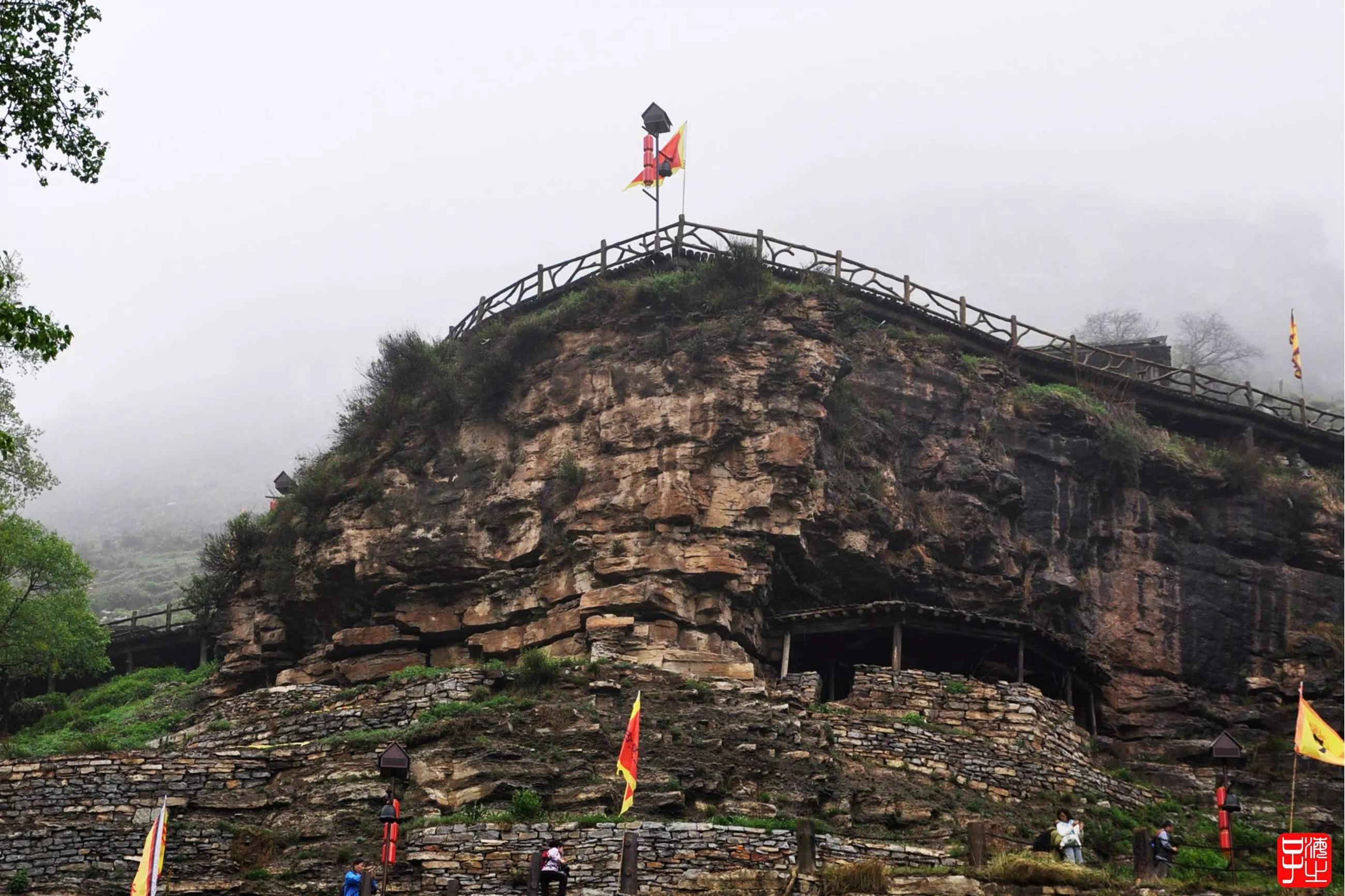 大巴從蘆芽山旅游中心出發(fā),在一個(gè)多小時(shí)后就到了懸空村。下車后,果然是不虛此行。老天爺也給力,原本天空下著霏霏細(xì)雨的天空,仿佛是為了迎接我們的到來(lái),停止了雨滴。但是大山之中,還是彌漫著濃濃的大霧,給人帶來(lái)了一種神秘感。