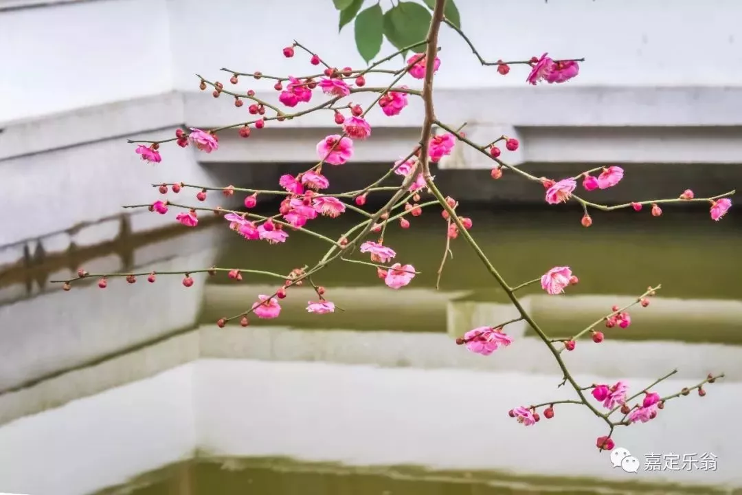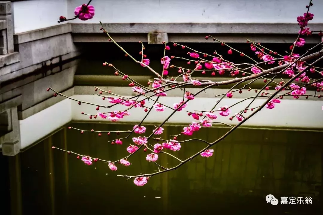 靠著嘉定博物館的一支河邊的紅梅。