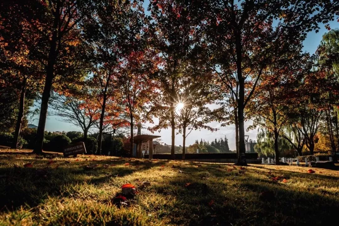 秋高氣爽,公園里的草地綠中泛著淺黃,楓樹葉悄悄換上了紅裝,分外艷麗。秋風(fēng)瑟瑟,落葉紛紛,那散在地上的落葉被陽光照得一片暖黃。