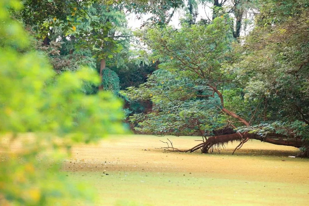 一夜秋風(fēng),一輪秋陽,片片銀杏葉覆著金色的光暈,紛飛在風(fēng)里,飄落在九曲橋畔,點點金黃隨著一池碧水,悠悠蕩蕩,就過了青青園。