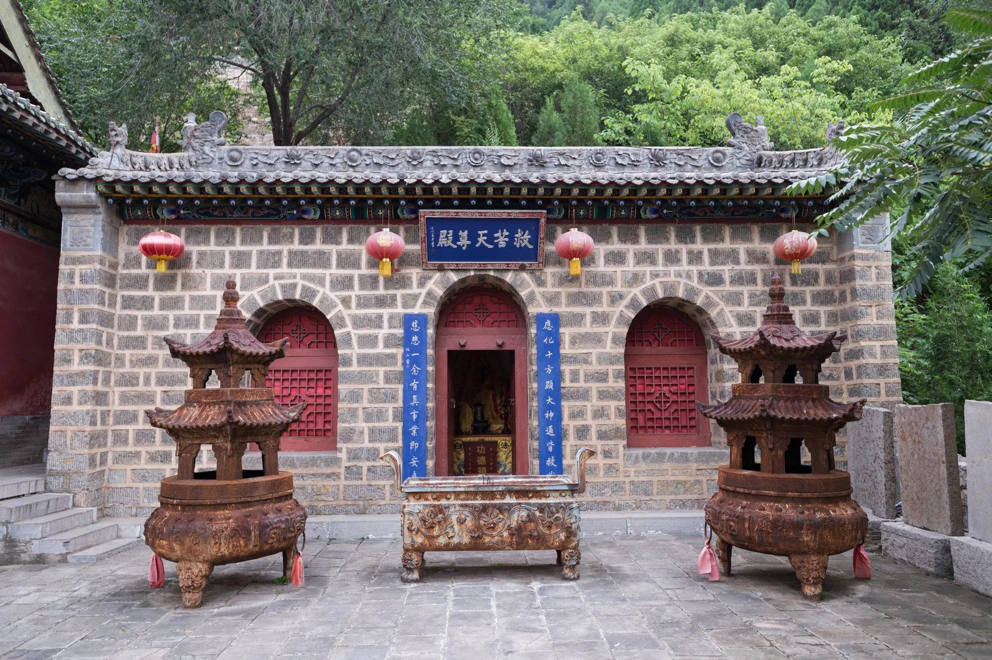 在三祖殿兩側(cè)還有兩座小一點(diǎn)的殿堂,為藥王殿和救苦天尊殿,其中藥王殿可祈福人們平安、健康,救苦天尊殿可祈福人們福祿、無(wú)苦無(wú)災(zāi),自八寶宮建造以來(lái),這里的香火就非常旺盛,為云丘山山間眾多廟宇中香火最旺盛的一座,其中還不乏外地人前來(lái)上香祈福。