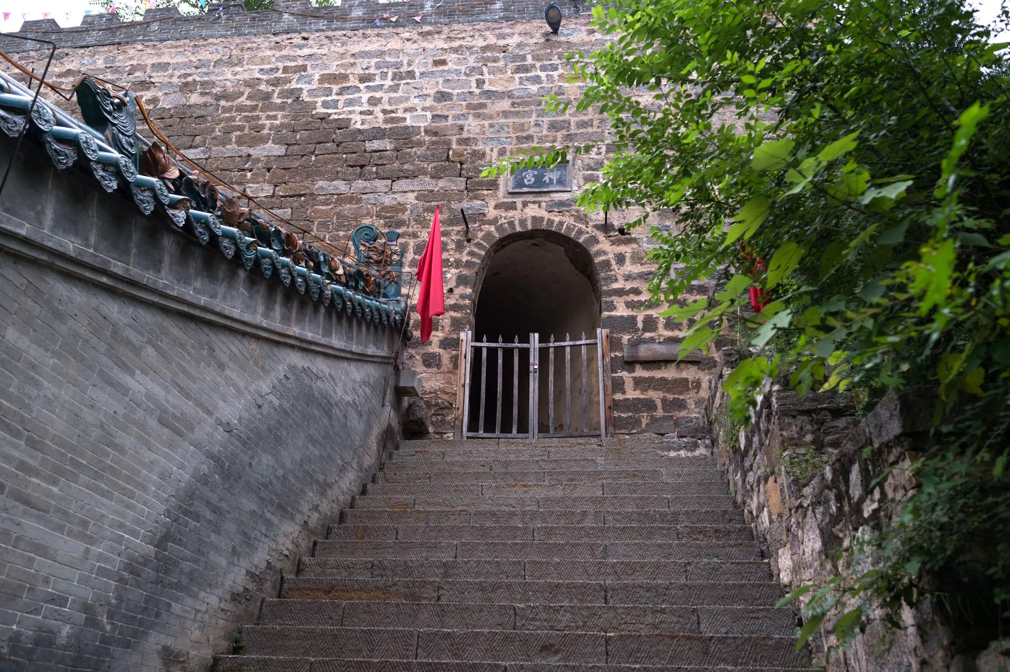 八寶宮中的殿宇皆是依山勢(shì)而建,從一個(gè)殿堂到另外一個(gè)殿堂皆需攀爬梯階,到最后面時(shí)可看到一道不大的山門,這里是“神宮”,但神宮并不開放,也許是因?yàn)檫@里是神仙生活的地方,凡人無(wú)法進(jìn)去吧。