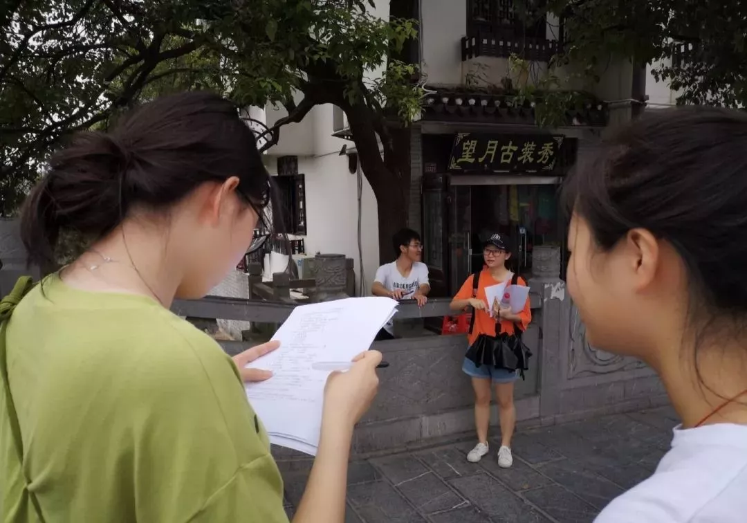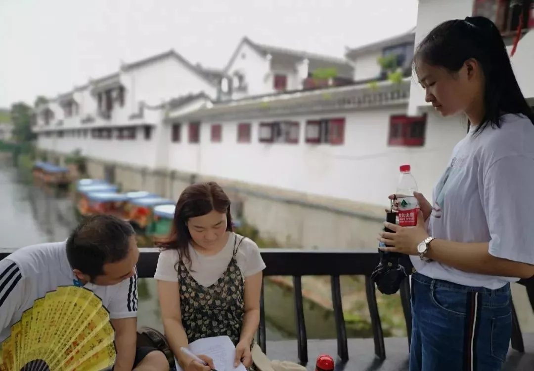 7月17日,團(tuán)隊(duì)成員來(lái)到三河古鎮(zhèn)街頭展開(kāi)問(wèn)卷調(diào)查。一路上,團(tuán)隊(duì)成員通過(guò)調(diào)查問(wèn)卷為徽派建筑發(fā)出“心聲”,讓更多的人來(lái)了解、重視徽派建筑。