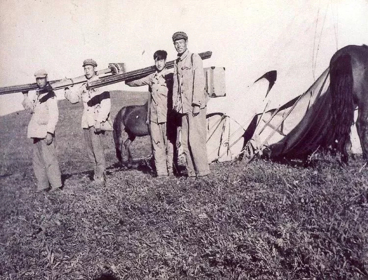 1968年北京軍區(qū)第32測(cè)繪大隊(duì)執(zhí)行華北地區(qū)測(cè)圖任務(wù)時(shí),技術(shù)人員出發(fā)建造測(cè)量標(biāo)志。