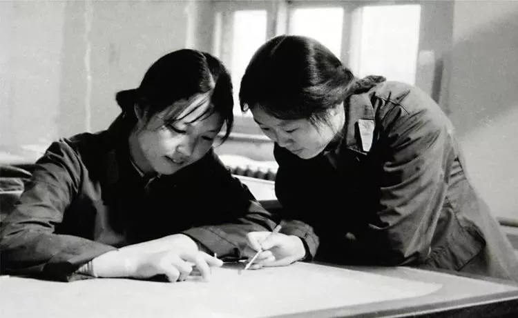 地圖編繪,是編制各種比例尺地形圖的重要工序。圖為1974年總參第22測(cè)繪大隊(duì)執(zhí)行華北地區(qū)1:10萬(wàn)地形圖時(shí),技術(shù)人員交流地圖編繪作業(yè)經(jīng)驗(yàn)。