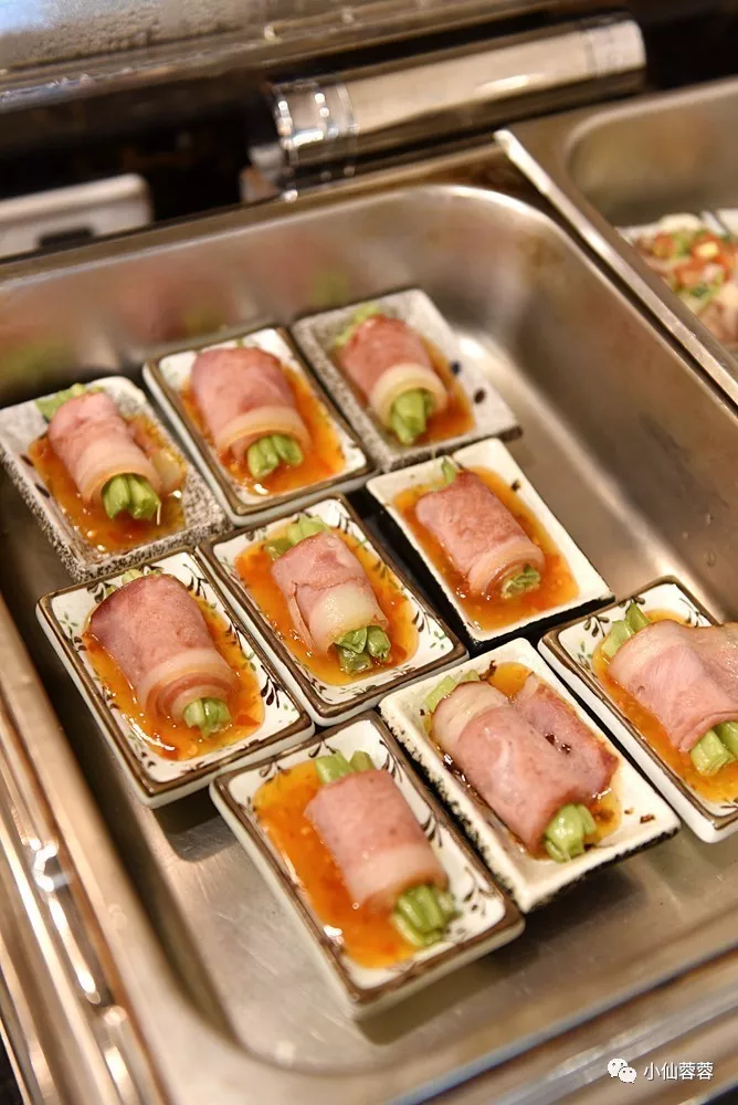 熱菜類有培根卷、日式燉蛋、燒烤豬肋排、墨西哥牛仔片、甜椒番茄燴雞、瑞士土豆餅、燴蔬菜等選擇很豐富,更有東南亞風(fēng)味菜肴,咖喱羊肉、咖喱蔬菜、印度烤雞;還有海鮮、燒烤鐵板美食,想吃什么都可請廚師現(xiàn)場烤制!