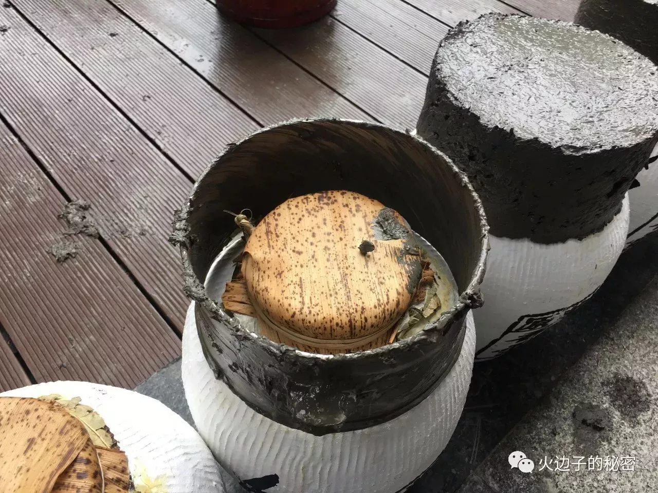 每壇酒在進行完所有的工序之后,就該封壇了,用荷葉把壇口封住,再用紹興當?shù)靥厥庹{(diào)制的封壇泥把壇口封住,一壇美酒就可以長時間的存放了。