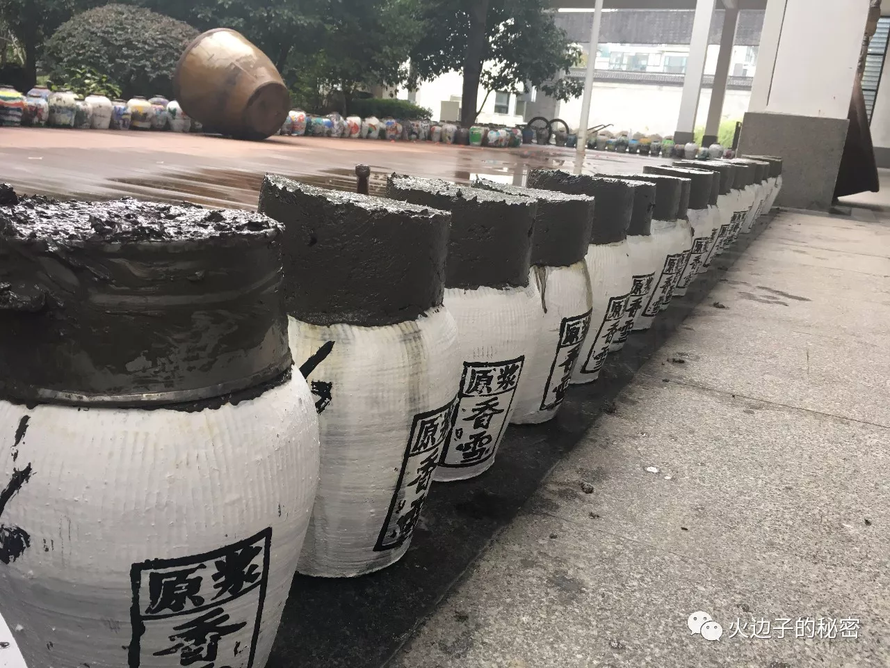 在去酒廠的路上遠遠的望見個建筑——國家黃酒研究所。我們只在門口短暫的停留了片刻就走了,這是一個國家級的黃酒研究中心。還沒有進廠區(qū),就看見了堆積如山的酒缸,來到廠房上空再俯瞰廠區(qū),一排一排的酒缸就像矩陣一樣環(huán)繞在廠區(qū),隨即估計一下也是上百萬記的酒缸。