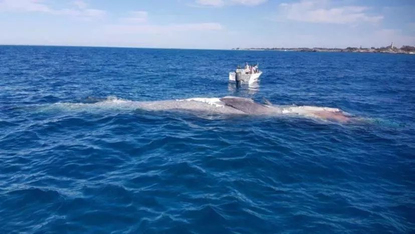 西澳沖浪救生協(xié)會(huì)表示,這具12米長(zhǎng)的鯨魚(yú)尸體正在朝著Thomson Bay輪渡碼頭東北方漂流。