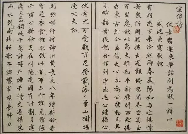 習(xí)字必先從摹擬入手,這是一定不移的開始辦法,但是,我不主張用薄紙或油紙蒙著字帖描寫,也不主張用九宮格紙寫字。這是為什么呢?因為摹擬的辦法,只不過是為得使初學(xué)寫字的人,對照字帖,有所依傍,不至于無從著手,但是,切不可忘記了發(fā)展個人創(chuàng)造性這一件頂重要的事情。若果一味只知道依傍著寫,便會有礙于自運能力的自由發(fā)展;用九宮格紙寫成了習(xí)慣,也會對著一張白紙發(fā)慌,寫得不成章法。最好是,先將要開始臨摹的帖,仔細地從一點一畫多看幾遍,然后再對著它下筆臨寫,起初只要注意每一筆一畫的起訖,每筆都有其體會,都有了幾分相像了,就可注意到它們的配搭。開始時期中,必然感到有些困難,不會容易得到帖的好處,但是,經(jīng)過一個相當(dāng)長的“心摹手追”的手腦并用時期,便能漸漸地和帖相接近了,再過了幾時,便會把前代書家的筆勢筆意和自己的腦和手的動作不知不覺地融合起來,即使離開了帖,獨立寫字,也會有幾分類似處,因為已經(jīng)能夠活用它的筆勢和筆意了,必須做到這樣,才算是有些成績。