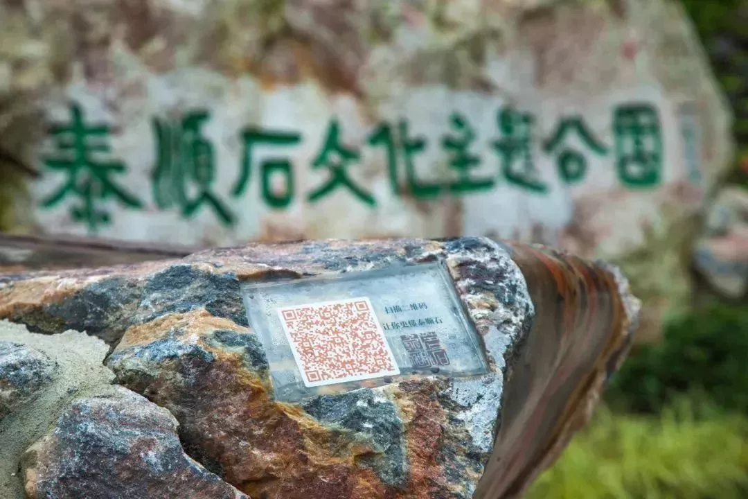 公園中隨處可見“會說話的石頭”,輕掃二維碼,便能輕松了解泰順石。
