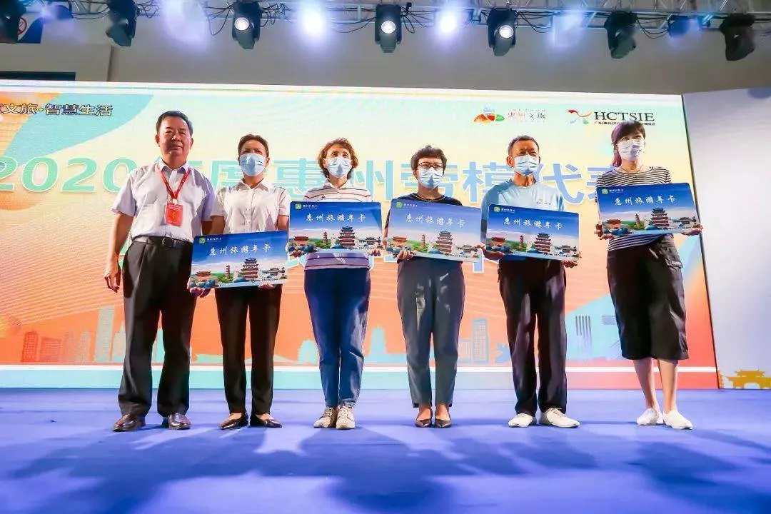 ▲惠州市文化廣電旅游體育局二級調(diào)研員田佑良為勞模代表頒發(fā)惠州旅游年卡