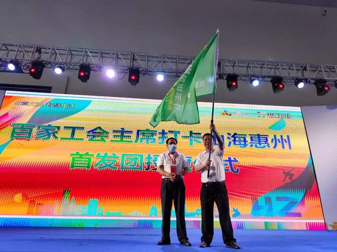 ▲惠州市人民政府副秘書長楊榮為百名工會代表授旗
