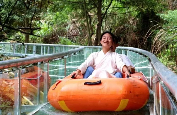 根據工作人員的介紹,天空漂流作為俠天下旅游區(qū)夏日新推游玩項目,也是福建首個“高空玻璃水滑道漂流”,被稱為“華南第一漂”!