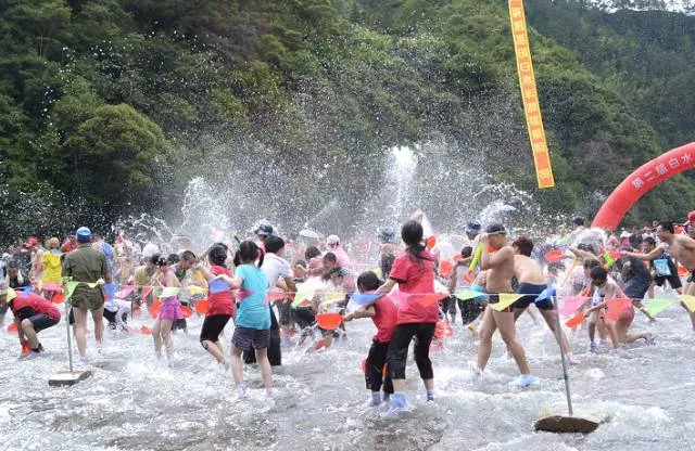 那么,不得不提的就是白水洋里的百米沖浪滑道, 在近百米,寬60多米的天然沖浪滑道里耍個刺激,光是坐在水中,就不要太爽~