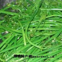 蕨菜 又名龍頭菜、吉祥菜。吃起來不僅鮮嫩滑爽,而且營養(yǎng)價值很高,素有“山菜之王”的美譽。蕨菜的食法很多,鹵、爆、炒、燒、煨、燜都可,清香味濃。