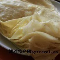 筋餅又叫草帽餅,東北特產(chǎn)。 它透明薄薄的好像每層都浸了油,香而不膩。 原料:面粉1.1千克、豆油250克、精鹽20克、花椒面少許 制作方法:1、將1千克面粉倒在案板上,加475克溫水、10克鹽和成比油餅稍硬一些的面團(tuán),餳15分鐘。2、將100克面放在碗內(nèi),加10克精鹽、花椒面和150克豆油拌成軟酥備用。3、將餳好的面團(tuán),搓成條,揪成250克一個的面劑,稍按,用油杖子搟成長33厘米、13厘米寬的薄片,把軟油酥均勻抹上。然后兩手拿住上端橫頭,一反一正地反復(fù)折疊到頭為止,抻長。從左向右翻過來面朝上,再從左向右盤起餅劑呈草帽狀,餳10分鐘。4、把餅劑翻過來,稍按,用油搟面杖搟成直徑約46厘米的圓餅即成。5、把平鍋燒七至八成熱時,先刷一層油,把餅用油杖子托下平鍋先“搶面”,后找火,可用兩手掌推轉(zhuǎn),見餅兩面出金黃色、呈丁字形花時即熟。用鏟刀鏟出,一切五半,上桌即可。