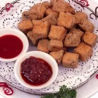 南京的臭豆腐可分為兩種,一種是灰白的嫩豆腐,一種是瓦灰的豆腐干。嫩臭豆腐下到油鍋里炸至金黃色,就可以起鍋,吃的時候澆上一些辣椒醬、芝麻醬、蒜汁、香菜、小蔥、姜末,吃起來外脆內酥軟,味道香濃;灰色的臭豆腐干子,在油里炸的時間需稍久一些,才能炸得透,隨著誘人的臭味彌漫開來,豆腐干的表面就會起小泡泡,待色轉變成灰黑色,就可以吃了。這樣的臭豆腐干子一般切成小塊,串在竹簽上,炸熟后直接刷上攤主備下的調味醬,趁熱食之,香脆可口,頗有嚼頭。 南京高淳的臭豆腐在做法上也有些與眾不同。先用上好的黃豆制成水豆腐,然后把白嫩的水豆腐壓制成白白的豆腐干子;再把豆腐干加入到一種鹵液中。此處的鹵液是最有講究的,需要用隔年留下的爛咸菜汁做成,純綠色、純天然,沒有添加任何色素,散發(fā)出來的是很自然的臭味。把盛放的壇子封好口,再埋到地底下,數(shù)天之后取出,白豆腐已成青墨色的臭豆腐干了。掰開豆腐干,可以看到從里面到外面,都是青墨色,聞聞奇臭,炸熟后入口卻又是奇香無比。這種地道的臭豆腐,近年來已經快在市場上絕跡,出售的多是些仿制的贗品。