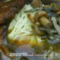 松樹蕈油面,這種面是常熟的一個傳統(tǒng)的特色面點,有“素中之王”之稱,興福蕈油面在常熟是出了名的。蕈,是一種野生菌,而松樹蕈則是常熟虞山的一種特產(chǎn)。它生長在松樹的根部,并不是每個季節(jié)都有,它的主要生長期是春秋兩季,那個時候的蕈又嫩又鮮,可是新鮮采下來的蕈里有很多小蟲子,先撕去表層膜衣、洗干凈后必須用鹽水浸泡三四個小時,然后才能下鍋用素油熬。這個素油也不能隨便用,加工蕈油時一定要用純正的農(nóng)家菜油?;镜牟襟E就是先將生姜塊拍松后投入菜油,等油鍋燒到冒青煙時,鍋離火口,慢慢放入八角、丁香等佐料,接著再將蕈放入油鍋中爆透,再移旺火加醬油、鹽、糖等,燒至水分揮發(fā)即成。用蕈油作為面“澆頭”的蕈油面,香氣撲鼻,鮮美異常,非一般蘑菇可比。 蕈油面,最早只是常熟興福寺和尚食用的一道素食,后來得到了食客們的青睞。1947年10月19日,宋慶齡、宋美齡姐妹暢游罷興福寺,在寺外林中野餐,一碗興福蕈油面端上桌,清香撲鼻,色澤誘人,宋氏姐妹品嘗后覺得名不虛傳,更是贊不絕口,連聲道:“好、好、好,想不到小地方有這么好吃的菜和面”。