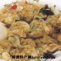 入夜,假如你漫步在青石板鋪就的小街,就會聽見一聲聲不緊不慢的單調(diào)沉悶的敲梆聲,“篤──篤!”,請不要誤會這是打更人在敲梆,而是臨城解放前就有的餛飩擔(dān)子。在以往,不管老人和孩子,聽到這“篤──篤”的聲音,就知道賣餛飩的老人步履艱難地挑著擔(dān)子,蹣跚地過來了。“買餛飩?!睋?dān)子停了下來,孩子遞上七分錢,賣者總利索地在一個碗子里放進少量白開水,將煮熟的餛飩撩進碗里,然后用豬肉絲、雞湯和冬筍絲加韭菜蓋在上頭,謂之“澆頭”。這就是臨海的風(fēng)味餛飩。