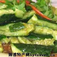 綏中拍黃瓜 遼寧 ? 葫蘆島 ? 綏中 綏中拍黃瓜 調(diào)料:蒜泥4克,香油3克,醋10克,醬油5克,鹽1克,味精0.2克。 做法:黃瓜洗凈,切去瓜尾,用刀拍酥裂,橫切成塊,放入盤(pán)中,木耳洗凈用沸水焯燙至熟,撈出控水放在黃瓜上,將調(diào)料灑在木耳上,吃時(shí)拌勻即可。 注:黃瓜除熱量低,可除濕利水,清熱解毒外,其所含膳食纖維有促進(jìn)有毒物質(zhì)排泄和降低膽固醇的作用。鮮黃瓜中特有的抑制糖轉(zhuǎn)化為脂肪的-二酸有減肥功能。 贊 (0) 39 151 生成海報(bào) 葫蘆島秋李子 下一篇 0001-01-01 遼西火鍋 上一篇 0001-01-01 相關(guān)推薦