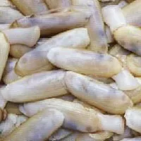 劍蟶,學(xué)名尖刀蟶,生長在肥沃的海田之中。兩扇潔白的殼衣,顯得輕盈而靈動。你想象不出油黑的灘涂,竟能孕育出如此光潔的生物。劍蟶體態(tài)如劍,與普通的海蟶相比,顯得嬌小玲瓏。野生劍蟶,約莫0.5厘米寬,1.5-2.5厘米長,當(dāng)?shù)厝朔Q“小劍蟶”。規(guī)?;B(yǎng)殖后,劍蟶的個頭也翻了倍,大的可達(dá)1-1.5厘米寬,4-5厘米長,這就是“大劍蟶”。