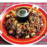 麻辣兔肉 山東 ? 濟寧 ? 汶上 做法:1、將兔肉剔去骨頭,剞上十字花刀,切成大小相等的塊,放入盆中加入料酒、醬油腌制20分鐘;2、坐鍋點火放入油,油溫7~8成熱時倒入兔肉,炸成銀紅色撈出控干油;3、鍋內(nèi)留余油,油熱放入花椒炸糊撈出,再放入干辣椒、蔥段、姜片煸炒出香味,倒入醬油、雞湯、料酒、雞精、鹽、白糖、兔肉、待湯開后,用小火焅20分鐘。最后放入紅油,用旺火收汁盛出晾涼即可。 特點:兔肉細嫩,味麻、辣、鮮、香。 提示:炸花椒時要把花椒炸糊,要麻香味。 贊 (0) 39 151 生成海報 汶上蘆花雞 下一篇 0001-01-01 大餅子燉小魚 上一篇 0001-01-01 相關推薦