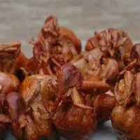 無(wú)棣大山燒雞,起源于山東省無(wú)棣縣碣石山鎮(zhèn)(原大山鎮(zhèn))。據(jù)民間傳說(shuō),大山燒雞已有300多年歷史。相傳明朝神宗皇帝,非常喜歡吃雞,皇宮內(nèi)的御廚1的手藝也不斷翻新,侍內(nèi)大臣為討好他,擺下擂臺(tái),召集民間1高手進(jìn)行御廚大賽,通過(guò)七天的較量,大山街的邢有才以他做的燒雞味美、肉嫩、色澤鮮亮脫穎而出,奪得此次擂臺(tái)賽的第一名,被招進(jìn)皇宮封為御廚,專(zhuān)門(mén)侍候皇帝,平時(shí)大臣、侍從也很難品嘗到。只有到歲末,各附屬?lài)?guó)來(lái)納貢,大擺宴席招待納貢使臣時(shí),大臣們才有機(jī)會(huì)美餐一頓。再就是在心腹大臣過(guò)大壽時(shí),為拉攏人心,御賜幾只燒雞以示皇恩。(過(guò)生日送燒雞的習(xí)俗,至今流傳了下來(lái))后來(lái),1607年(明萬(wàn)歷三十五年)邢御廚告老還鄉(xiāng),把手藝傳給了他的幼子,并一代代傳承下來(lái)。民國(guó)初年,大山燒雞的第五代傳承人邢寶亮推著獨(dú)輪車(chē),串街叫賣(mài),每天只做10只,賣(mài)完回家休息,決不多做一只,也不少做一只,人送外號(hào)“邢老十”,由于大山燒雞味美、生意好,好多村民上門(mén)學(xué)藝,邢老十思想很開(kāi)通,把手藝手把手教給登門(mén)學(xué)藝的莊鄉(xiāng)村民,他的技術(shù)漸漸被群眾所掌握,成了養(yǎng)家糊口的手藝。 大山燒雞的獨(dú)特之出:一是肉質(zhì)嫩,雞肉纖維細(xì)膩、肥瘦適度、鮮美可口、營(yíng)養(yǎng)豐富、倍受消費(fèi)者青睞;二是色澤鮮,外表?xiàng)椉t、雞油欲滴、外酥內(nèi)軟,大有看一眼饞涎欲滴的感覺(jué);三是價(jià)格廉,大山燒雞的價(jià)格隨行就市,是老百姓買(mǎi)的起、吃的起的美味佳肴。大山燒雞做工獨(dú)特,采用養(yǎng)殖、加工、銷(xiāo)售一條龍生產(chǎn)工藝,從市場(chǎng)購(gòu)進(jìn)優(yōu)質(zhì)笨雞苗進(jìn)行散養(yǎng),到1.5市斤左右時(shí)宰殺,先用含有肉桂等中草藥的老湯浸泡、蒸煮,然后用白糖熏烤,色澤鮮亮、香而不膩、味道鮮美、有勁道,“羊肉膻、豬肉滑、大山燒雞不塞牙”確定了大山燒雞在當(dāng)?shù)仫嬍承袠I(yè)中的地位,它美名遠(yuǎn)揚(yáng),是當(dāng)?shù)氐拿浴?大山燒雞在明朝萬(wàn)歷年間傳入大山街,由邢氏家族繼承發(fā)展。新中國(guó)解放后,以生產(chǎn)隊(duì)集體的方式,抽調(diào)技術(shù)比較好的社員加工燒雞,然后運(yùn)到集市上去買(mǎi),算集體收入。農(nóng)村實(shí)行生產(chǎn)責(zé)任制后,農(nóng)民為增加家庭收入,以家庭作坊的形式加工出售,其中,帶動(dòng)大山燒雞產(chǎn)業(yè)龍頭的是大山“小鐵屋”燒雞。大山村民李風(fēng)閣以煮的燒雞味美價(jià)廉而聞名,他為把大山燒雞技術(shù)發(fā)揚(yáng)光大,帶領(lǐng)三個(gè)兒子進(jìn)行加工出售大山燒雞,以自制的小鐵屋為出售點(diǎn),“小鐵屋”成了大山燒雞的代名詞。