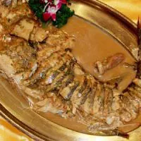 即墨鐵鍋燉大魚 山東 ? 青島 ? 即墨 即墨鐵鍋燉大魚魚肉軟嫩、口味咸鮮、湯汁香濃、營養(yǎng)豐富選新鮮海捕大魚宰殺清洗改刀備用,花生油適量放入特制大鐵鍋內(nèi),加入蔥姜絲爆鍋后,放入清洗好的大魚,加入花雕酒、醬油和適量碘鹽等,加水沒過魚身,猛火燒開后文火慢燉1小時自然收汁。 贊 (0) 39 151 生成海報 田橫石硯 下一篇 0001-01-01 即墨過橋海參 上一篇 0001-01-01 相關(guān)推薦