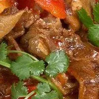 盤鴨,是房縣著名的風(fēng)味食品。據(jù)《房縣志》記載:鴨出西關(guān)數(shù)十里泉水灣,繞岸百余家,花柳映帶,泉眼數(shù)十孔,河水清澈,水生細(xì)暇,鴨食易肥,此謂房鴨。其歷史可以追溯到漢代,當(dāng)時(shí)盤鴨就是當(dāng)?shù)氐胤焦倬捶罨实鄣呢暺贰?房縣盤鴨的制作與一般的烤鴨、燒鴨、燉鴨有顯著的區(qū)別,盤鴨的制作十分考究,要經(jīng)過選鴨(一般選大小相稱的兩只鴨)、宰殺、退毛等工序。最具特色的加工方法是凈毛后,將鴨腿爪放入沸水中,速放速取,連續(xù)數(shù)次,捋下黃及揉遍鴨全身上色,用刀從鴨背開腔,掏出內(nèi)臟,洗凈腹腔,撤上適量椒鹽、五香粉,瀝盡水分,然后將大小適當(dāng)?shù)膬芍圾喆钆涑蓪?duì),兩背相對(duì)疊放,將腿翅互為交錯(cuò)蜷曲于兩只鴨相對(duì)的夾縫兩邊,頭頸交叉垂于兩旁,用繩繞鴨纏數(shù)圈扎實(shí),置平板上,用石塊壓數(shù)日成型后,剪開繩索,兩只鴨身合一體,好似橢圓形大菜盤,故而得名“盤鴨”。 吃時(shí),可用刀將盤鴨切成鴨片,蘸著調(diào)料吃,也可剁成塊,用鮮湯燉著吃。 盤鴨的特點(diǎn):色澤黃亮、味鮮香濃、菜形美觀。