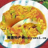 2.佳魚肉切成10厘米長的段,片成4厘米寬的薄片,3厘米寬處切成絲,l厘米連著,成為梳子形狀,用蔥姜酒汁和精鹽掩好后,兩面沾上干淀粉,由一端滾成卷,用手捏住連著的魚肉,搖擺一下使魚絲散開,放在抹油有柄的漏板上,中心放點黃色魚茸,按點火腿末,形似盛開的菊花。