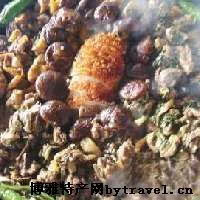 老板說道,盆菜用的材料大部分是自己出產(chǎn),雞、鵝是自己養(yǎng)的,木瓜、白菜也是自己種的,不會添加激素,品質(zhì)絕非市場上的肉菜可比,所以稱作農(nóng)家盆菜。度假村還有一些“看家”菜,如將軍鵝、坑螺炆雞以及憶苦思甜農(nóng)家菜。