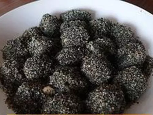 “潮汕落湯錢”是在潮州傳統(tǒng)小食“糯米錢”的基礎(chǔ)上,加以創(chuàng)新而演變來的,它吸收傳統(tǒng)小食的優(yōu)良做法,而對傳統(tǒng)小食一些不足之處加以改進,從而使這一小食更加完美,是一款具有代表性的創(chuàng)新潮州小食?!俺鄙锹錅X”在制法上繼承了“糯米錢”的一些優(yōu)點,比如糯米粉團煮熟后,放置盆中,用木棒反復(fù)擂攪,這樣的好處是使熟粉團更加純滑,更具韌性。但傳統(tǒng)“糯米錢”是在粉團熟后,用手捏成小塊,滾上糖粉白芝麻后即成,這樣既不衛(wèi)生,且煮熟糯米粉團直接食用,口感太粘,所以“潮汕落湯錢”改成熟糯米團入鍋用蔥油煎至兩面微脆,再改刀切塊裝盤,便克服了傳統(tǒng)“糯米錢”的不足之處。