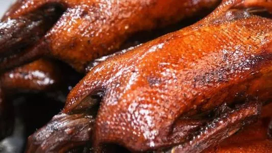 2.鍋洗凈,放入白糖125克及醬油、紹酒、桂皮、蔥、姜,加清水750毫升燒沸,將鴨入鍋,用中火煮沸后撇去浮油,鹵煮至七成熟時,再加白糖125克,繼續(xù)煮至原汁色澤紅亮稠濃,手勺不斷地把鹵汁澆在鴨身上,然后將鴨起鍋,冷卻后,斬成小條塊裝盤,臨食前澆上鹵汁即可。