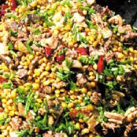關(guān)于“黃豆雞”,還有一個美麗動人的傳說:相傳早年間,有羅姓和王姓兩戶布依人家緊鄰相居,有一天,兩家都來了客人,羅家條件較好,殺雞待客;王家條件稍差,炒黃豆迎賓。快到吃飯時,羅家主人王家也來了客人,便親自上門邀請王家主客到他家相聚。王家不推辭,端著炒好的黃豆前往羅家。到了羅家,他們將炒好的辣子雞和炒好的黃豆混在一鍋,將鐵鍋置于炭炎上,不多時,黃吸入雞汁,變得干脆清香,而雞肉由于浸入炒豆香味而更加鮮嫩味美。主客驚喜,開懷暢飯,大醉方休。這道菜一傳十,十傳百,世代相傳,成為布依族待客的最好佳肴之一。