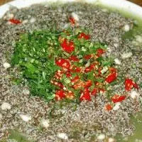 酸螞蟻蛋 云南 ? 西雙版納州 ? 勐臘 每年三、四月是掏酸螞蟻蛋的好季節(jié)。將掏出的酸螞蟻蛋清除成形螞蟻和其他雜質(zhì)后洗凈。先用豬油把辣椒、大蒜、鹽巴等配料炒黃后加水,待水燒開,倒入酸螞蟻,煮上20分鐘,盛入碗中,即可就餐。其味道鮮辣可口,并有特殊的酸甜味,含有豐富的蛋白質(zhì),是基諾人喜愛的佳肴。( 西雙版納) 贊 (0) 39 151 生成海報(bào) 蟹肉圓子 下一篇 0001-01-01 辣咪 上一篇 0001-01-01 相關(guān)推薦