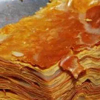 南澗鍋巴油粉,用當(dāng)?shù)赝愣狗劬贫桑铍y的一道工序要算是做鍋巴。首先將豌豆粉攪拌成漿,過濾干凈,倒入涂油鍋中,均勻涂漿,并注意掌握好火候,這樣做出來的鍋巴才能色澤金黃,厚薄均勻。鍋巴出鍋后,把過濾好的豌豆?jié){汁徐徐倒入沸騰的開水鍋中,同時(shí)不停的攪動(dòng),到漿汁粘稠透明成熟后,熄火起鍋,將鍋巴一層、熟粉一層漿汁依次鋪好,即可制成色鮮味美的鍋巴油粉。