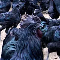 略陽烏雞的體軀近于正方形,具有烏冠、烏喙、烏趾、烏舌、烏皮的“六端烏”的特點(diǎn),所以又叫“六點(diǎn)烏”。公雞體形高大,骨骼粗壯,腿粗長,肌肉發(fā)達(dá),體軀寬而深,喙短而向下彎曲,一般為單冠6-7齒,肉髯大,冠及肉髯呈烏色或紫色,虹彩為栗色,頸高昂,龍骨稍突起,胸寬而深。兩翅寬廣,尾羽發(fā)達(dá),瑤羽高聳。四趾,趾大張開。體形美觀,富有雄形。羽色有黑、紅、白三種,以黑為主。性成熟早。母雞體形較小,喙較長,頸稍短不高昂,頸部毛蓬松,兩翅貼于體側(cè),整個體軀粗壯結(jié)實(shí),尾羽整齊上翹,或扇形或佛手形,毛色以黑為主。平均開產(chǎn)七、八月齡。