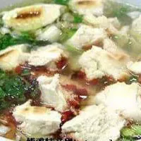 饃掰好后,請(qǐng)伙計(jì)呈給掌勺大廚,加羊肉湯大火快煮,加牛羊肉、粉絲、蔥花、蒜苗、香菜,高級(jí)一點(diǎn)的(西安都稱之為“優(yōu)質(zhì)的”)還有木耳、黃花菜和香干等即可端上來吃了。這樣一大碗自己親手掰好的泡饃,翠綠的蔥花、蒜苗、香菜、紅褐色的牛羊肉、黃色的金針菜、映襯著潔白晶瑩的粉絲、黝黑的木耳、香味四溢,使人食指大動(dòng)。還應(yīng)注意的是:端上來的泡饃應(yīng)是泡饃墊底,粉絲覆成網(wǎng)形,佐以蔥花、香菜、牛羊肉擺成魚形在最上面。如若不然,您完全可以調(diào)侃一下老板請(qǐng)的師傅是不是叫南郭。 吃時(shí)左手拿勺,右手執(zhí)筷,泡饃上桌后,把辣子醬鋪在上面,切忌攪動(dòng),講究從一邊“蠶食”,以保持鮮味,一老吃家說這樣鮮熱之氣跑不散,但我尋思攪動(dòng)過甚,泡饃不成其為泡饃,羊肉湯變成面糊糊才是最可怕的。糖蒜用否,個(gè)人自愿。餐后飲用一小碗原汁烹制而成的高湯,以為清口。