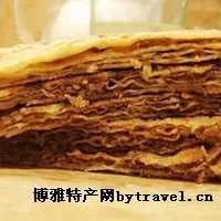 千層牛肉餅為用牛肉作餡的三角形小餅,由古代以菜為餡的春餅演化而來(lái)。制做時(shí),將牛肉剁成細(xì)泥,切碎蔥,加以適量食鹽、味精、豆汁油、花椒和姜末、草果等。用溫純堿水和面,反復(fù)揉搓后,抹上清油,從右端扯開,越薄越好;然后從右端開始放入肉餡,從右向左,邊扯面邊卷曲,并用手壓成圓餅,即可在平頂鍋內(nèi)烙烤。燒上油,烙約15分鐘,即可上桌食用,味形交輝,堪稱佳絕。正如清詩(shī)所描寫的那樣“調(diào)羹湯餅佐春暗,春到人間一卷之,二十四番風(fēng)情過(guò),縱教張畫也非時(shí)”。