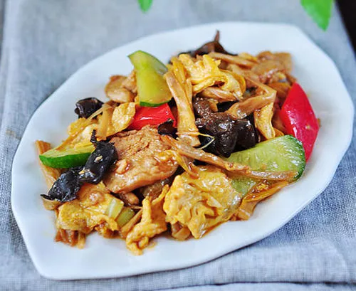 苜蓿肉 陜西 ? 榆林 ? 府谷 苜蓿肉這里的苜蓿也有人寫作木須指的是雞蛋。早年,人們避“蛋”字的諱(府谷人把1叫蛋),不說吃蛋。將雞蛋兩三枚打入碗加鹽和料酒少許將黃打散,炒瓢放油煉熱倒入雞蛋翻炒,要炒散。蛋熟倒出。炒瓢放油煉七成熱,加入滑好的肉絲或肉片(滑法見前)再放蔥絲、蒜片、醋、醬油、鹽、調(diào)味品翻炒入味,待肉炒香加入炒熟的雞蛋,拌勻即可裝盤。 贊 (0) 39 151 生成海報(bào) 雞片 下一篇 0001-01-01 瓜筋 上一篇 0001-01-01 相關(guān)推薦