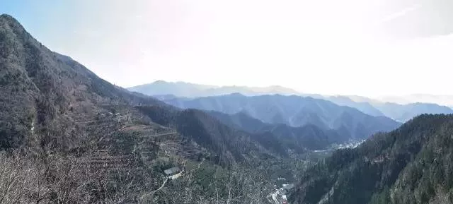 回到洞門(mén)前平臺(tái)極目遠(yuǎn)眺,可見(jiàn)山脈,群山環(huán)抱,連綿不斷。蒼松翠柏點(diǎn)輟,綠草植被覆蓋,顯得景色秀麗,在高處俯瞰下面有“一覽眾山小”的感覺(jué)。