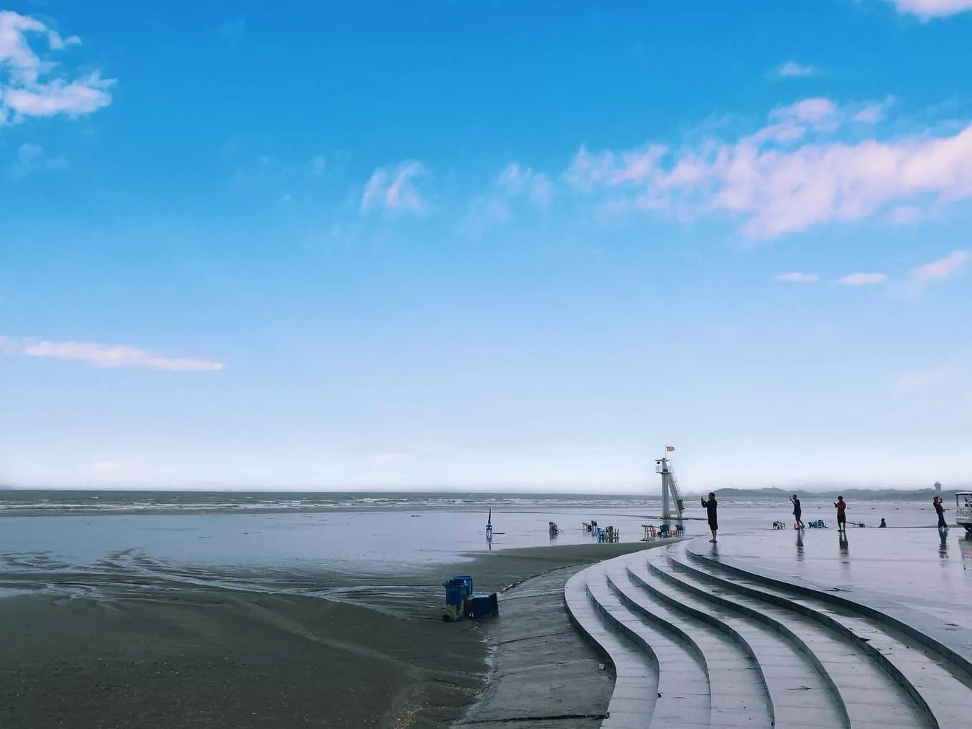 金灘因為坡緩、灘平、無淤泥,淺灘漁產豐富,是全國最適宜拉大網(wǎng)捕撈的地方。海天一色,如一副美麗的油畫~